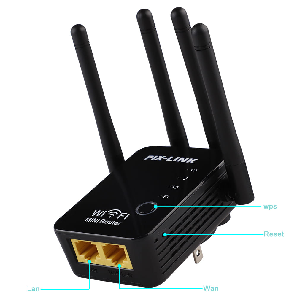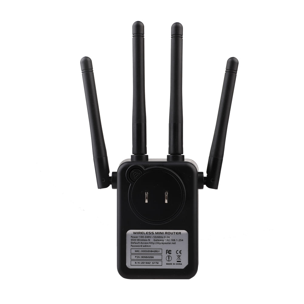 Four External Antennas. Built-in power adapter, no bulky adapter needed.