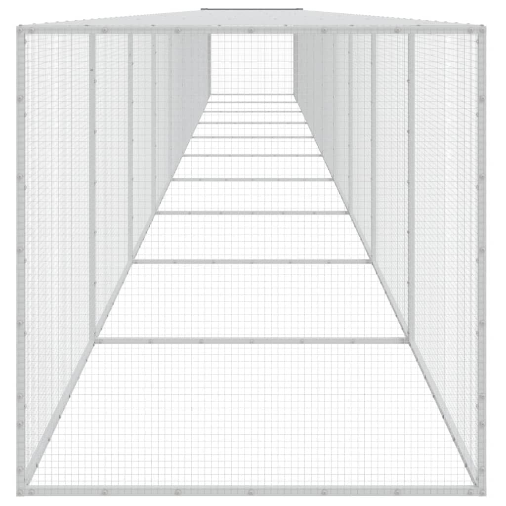 This Chicken Cage gives your feathered friends a safe and spacious home, featuring a light grey finish that looks great in your backyard. It measures 394.9 x 38.6 x 35.4 in, and its sturdy galvanized steel build is made to handle outdoor conditions, providing a perfect shelter for chickens or rabbits.