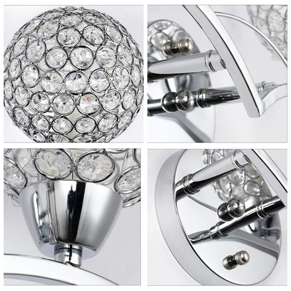 Specification:Voltage:220VBulb type:E14Is bulb included:YesLight bulb:incandescent bulbOption:gold, sliverMaterial:crytal+stainless steelSize:180mm(L)*210MM(H)Base diameter:120mmcrystal diameter:120mmNote:The free incandescent bulb(warm white)is 220V. You can replace the light bulb for the local voltage.Package Included:1*wall lamp